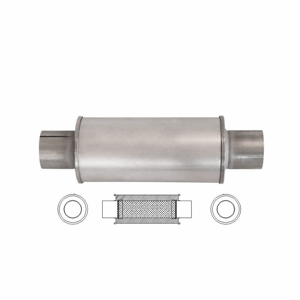 5" Round Centre/Centre Configurations Universal Mufflers | Aluminised | Select Your Size Length and Internal Options - 2.25 in (57.1mm) / 12 in. (305 mm) / Chambered is backordered and will ship as soon as it is back in stock.