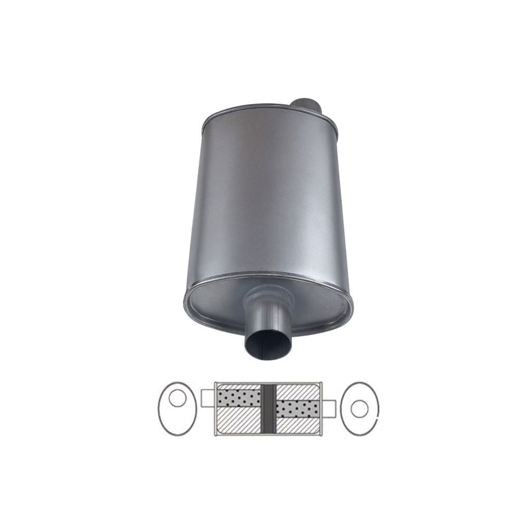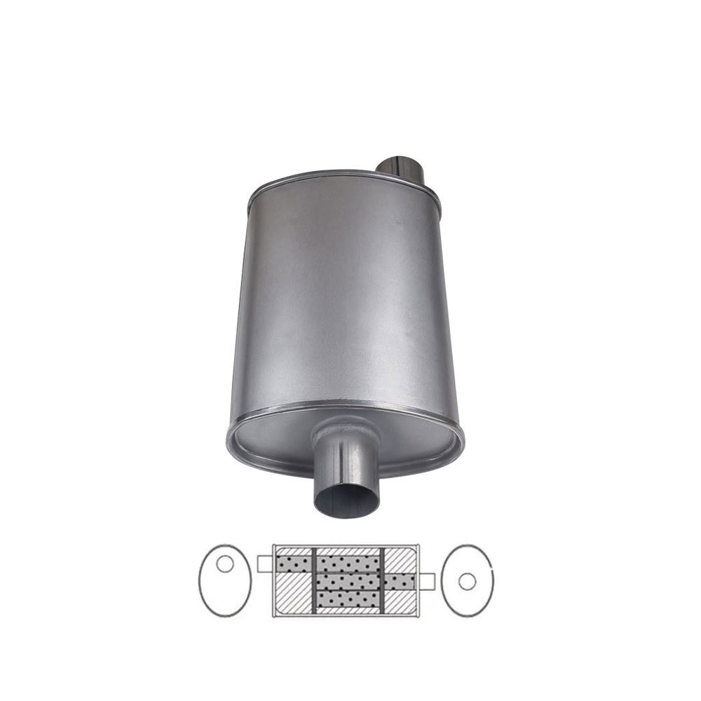 8" x 4" Offset/Centre Configurations Mufflers | Aluminised | Select Your Size Length and Internal Options - 16 in. (406 mm) / Triple Flow / 1 3/4 in (44.4mm) is backordered and will ship as soon as it is back in stock.